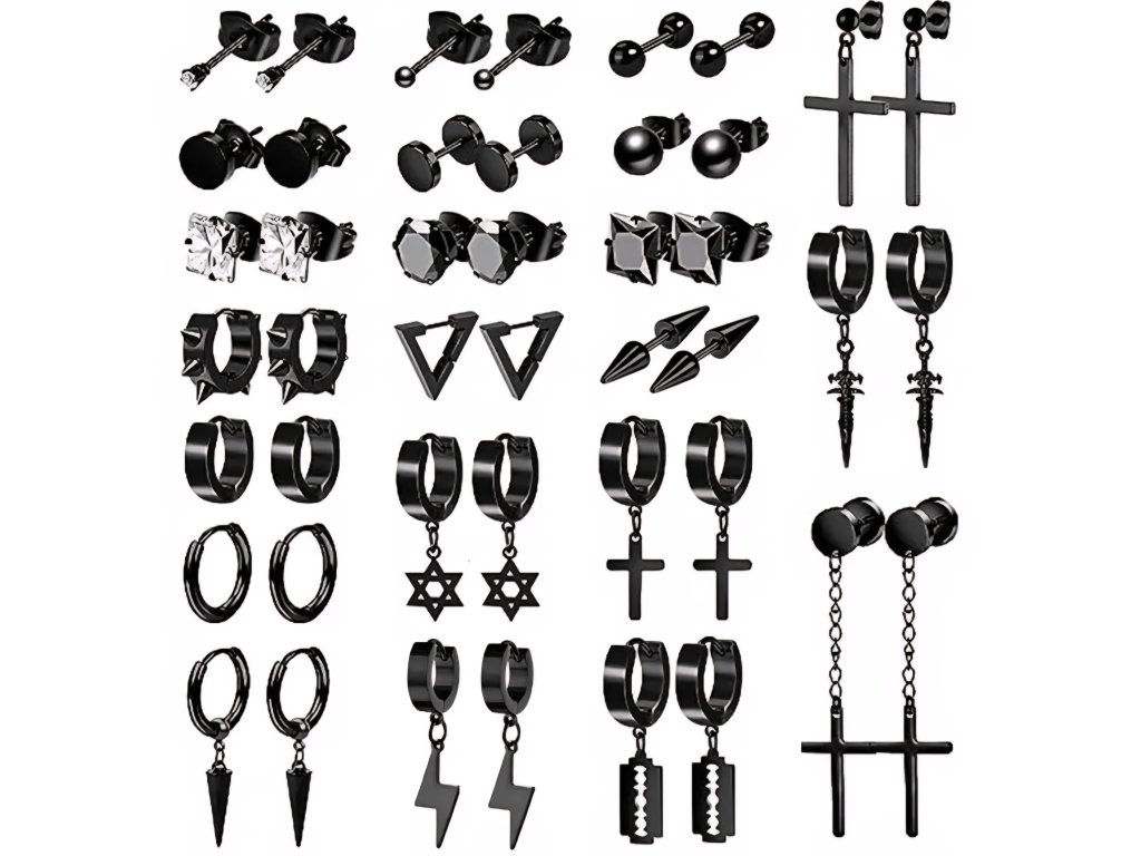 Velká Sada 20 Párů Černých Náušnic – Punk & Gothic Styl, Unisex, Chirurgická Ocel