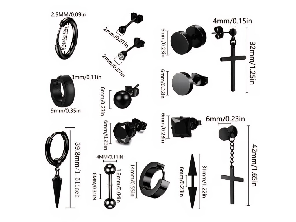 Kvalitní Chirurgická Ocel: Vyrobeno z hypoalergenní chirurgické oceli, která je odolná vůči korozi, nečerná a je vhodná i pro citlivé uši.