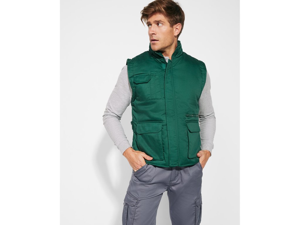 Pracovní vesta s celopropínacím zipem, krytým klopou se zapínáním na suchý zip. Vesta má jednu kapsu na mobil na pravé vnější straně, dvě přední kapsy s klopou a dvě kapsičky na propisku. Dále má jednu přední kapsu na zip a vniřní kapsu se zapínáním na suchý zip. Vesta disponuje větracími otvory pod průramky, prodlouženým zadním dílem a na bocích zadní části nastavitelnými cvočky k případnému upravení velikosti.
