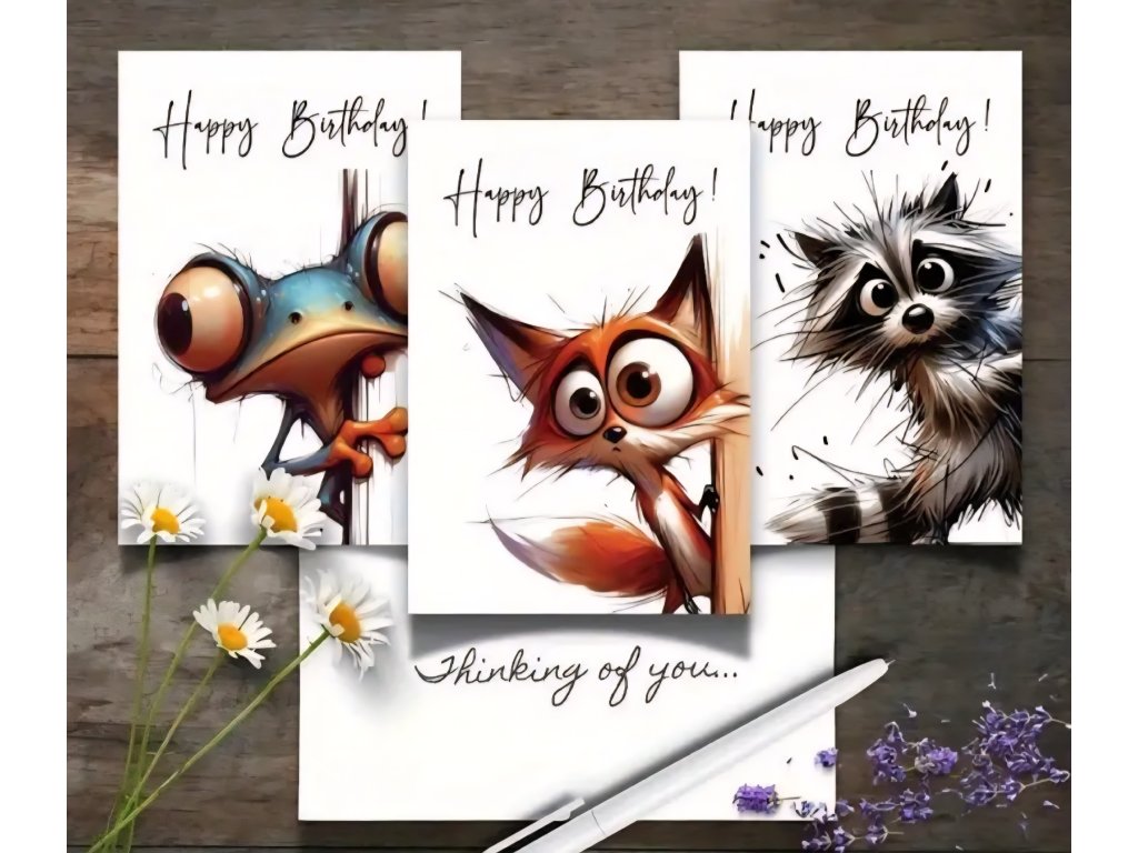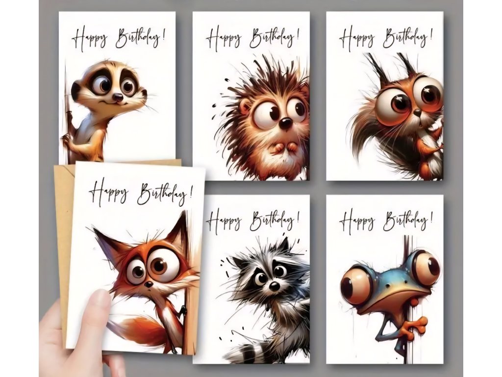 Hledáte narozeninové přání, které je stejně originální a zábavné jako oslavenec sám? Zapomeňte na nudné a obyčejné kartičky! Tato kolekce s vtipnými, umělecky ztvárněnými zvířátky s obrovskýma, lehce potrhlýma očima zaručeně vykouzlí úsměv na tváři a stane se hitem každé oslavy.