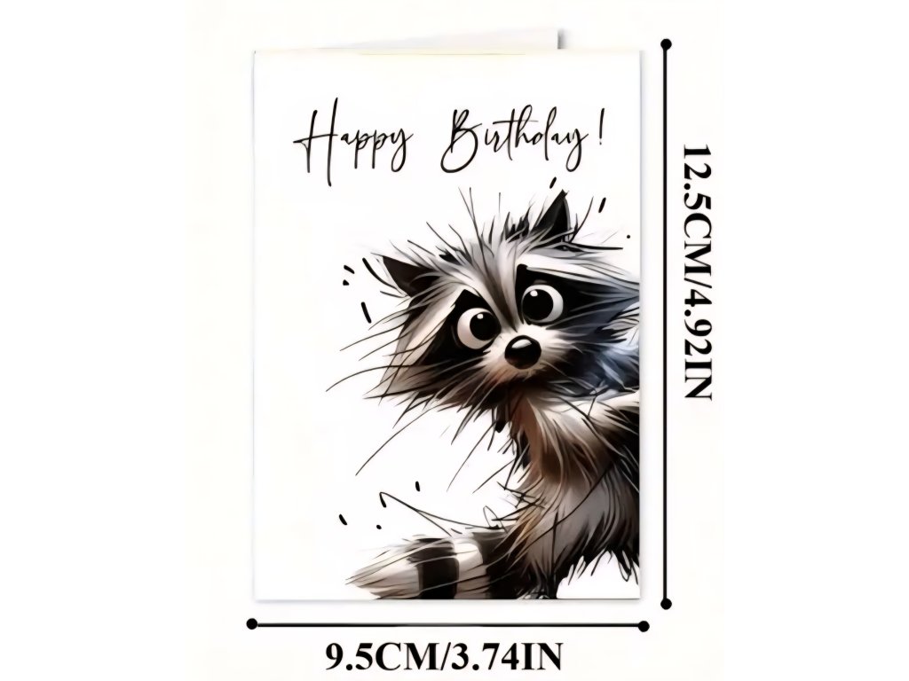 Každé přání v této sérii vyniká svým jedinečným, dynamickým designem. Zvířátka s překvapeným a zvědavým výrazem vykukují zpoza rohu a přejí "Happy Birthday!". Uvnitř je přání zcela prázdné, takže můžete připojit svůj vlastní vtipný nebo milý vzkaz. Součástí balení je i stylová obálka z přírodního hnědého papíru.
