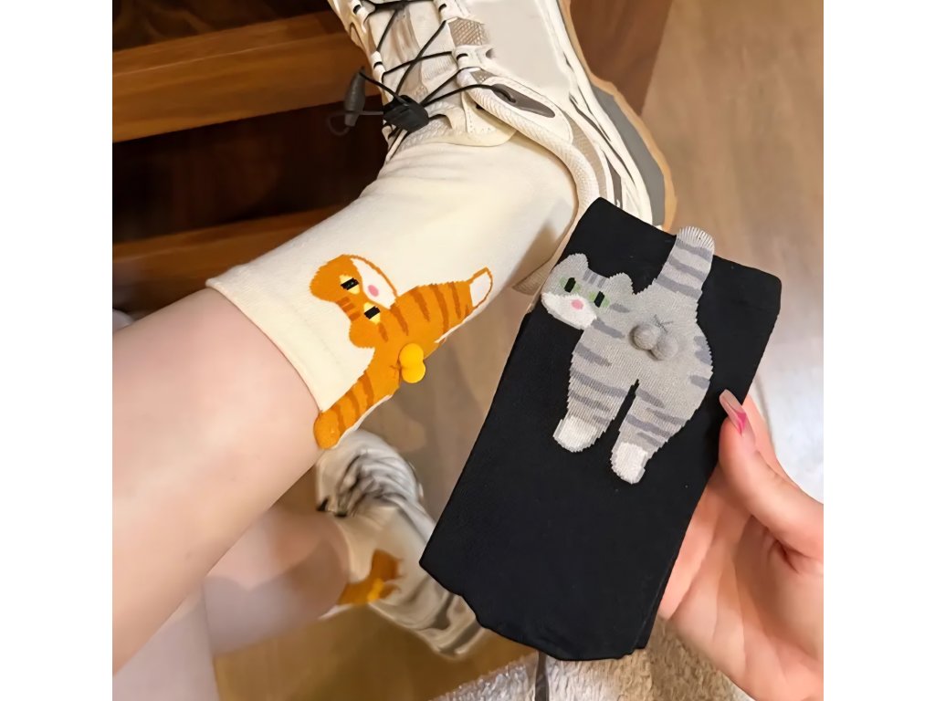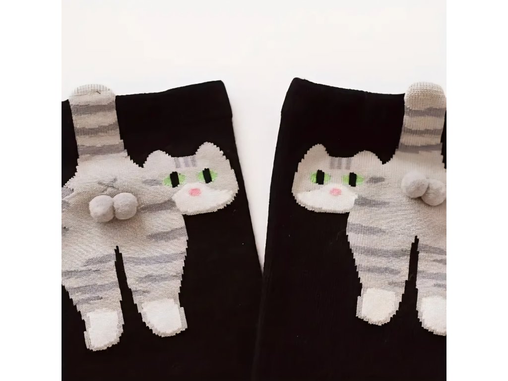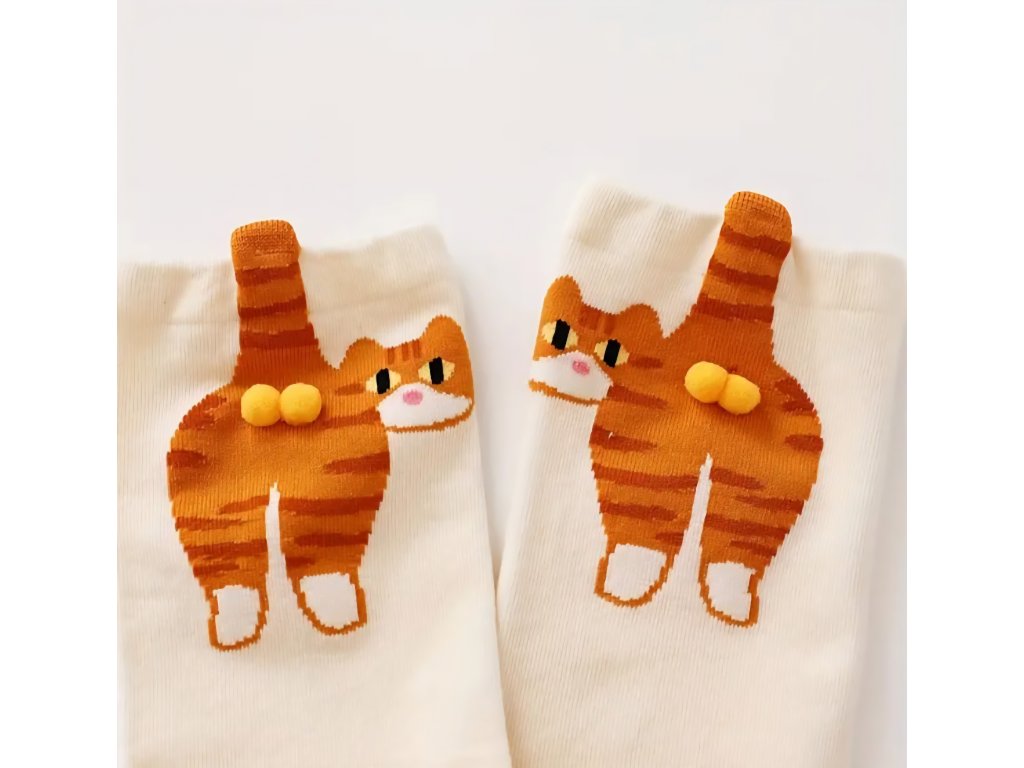 Vtipné ponožky "KOČIČÍ ZADEČEK" s 3D bambulkami