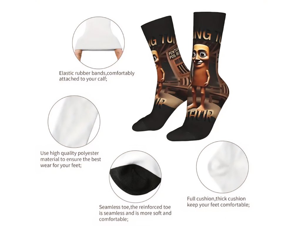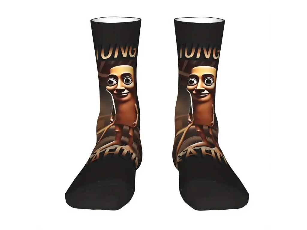 Odvažte se být jiní a ukažte svůj jedinečný smysl pro humor! Pro všechny fanoušky bizarních internetových memů a surreálné zábavy přinášíme tyto nezapomenutelné ponožky s ikonickým motivem "Tung Tung Tung Sahur". Je to módní doplněk, který zaručeně nezůstane bez povšimnutí a stane se tématem každé konverzace.