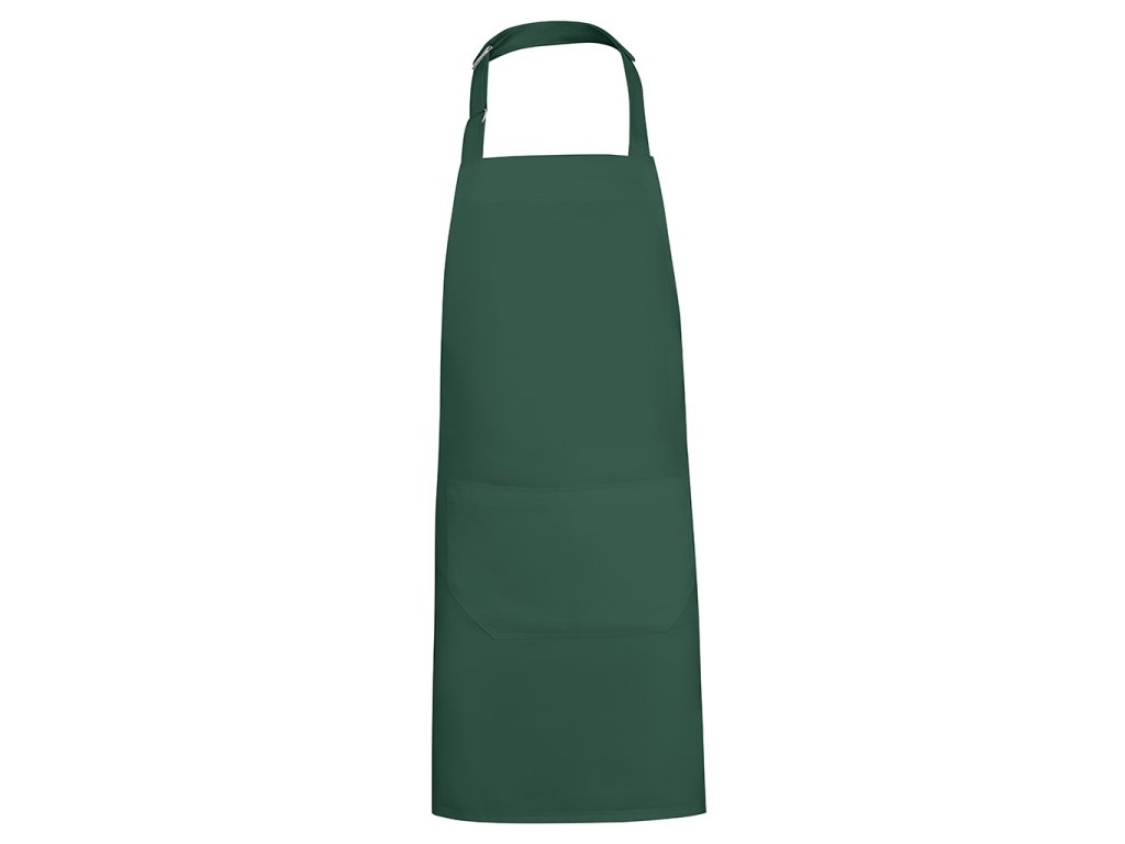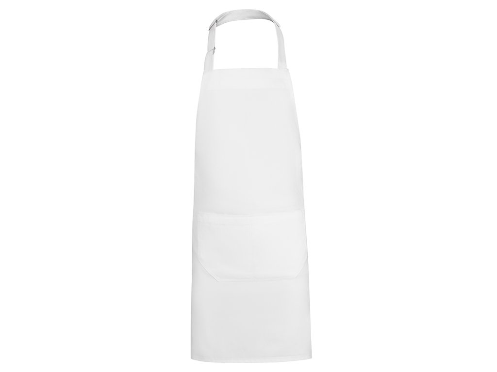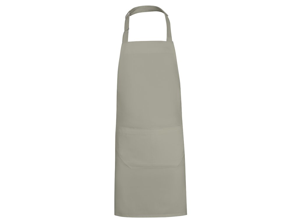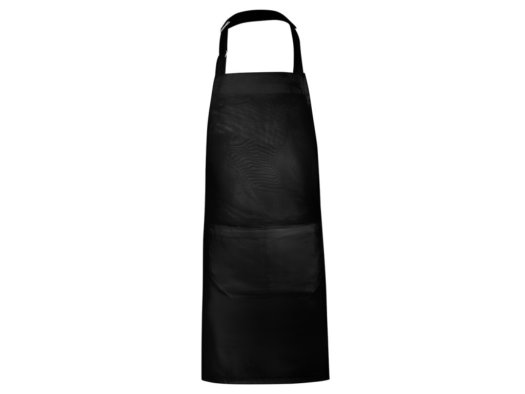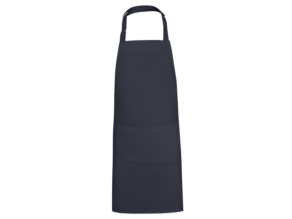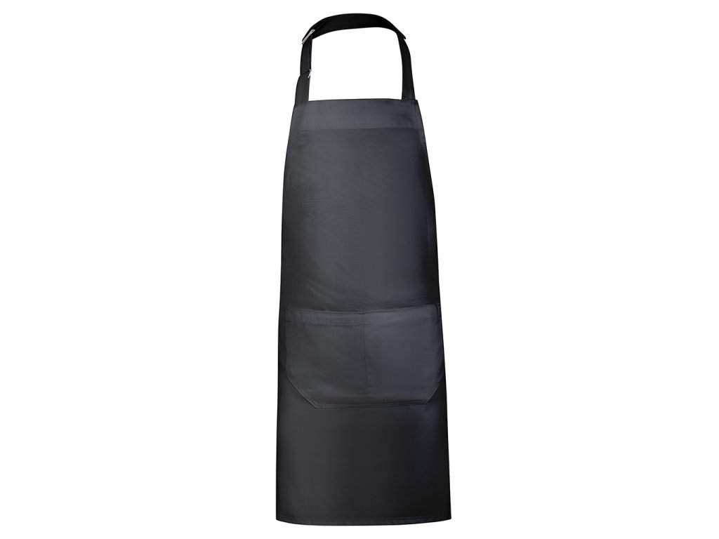 Dlouhá keprová zástěra z recyklovaného polyesteru a bavlny. Popruh na krk s nastavitelným zapínáním. Boční stahovací popruhy. Dvě přední kapsy.