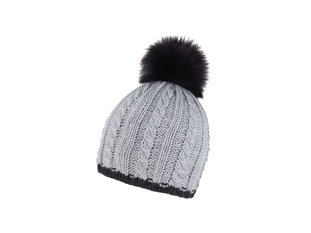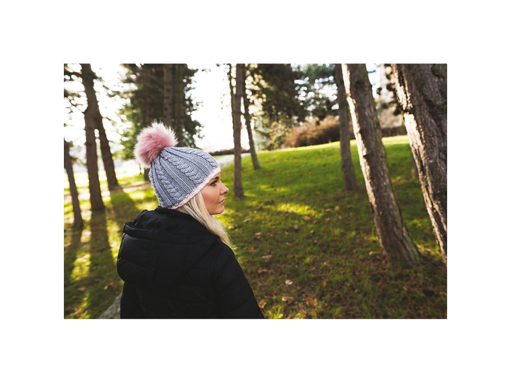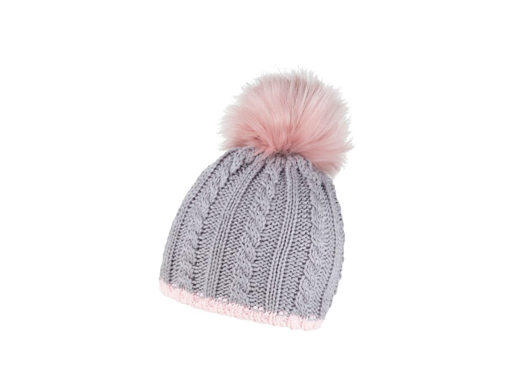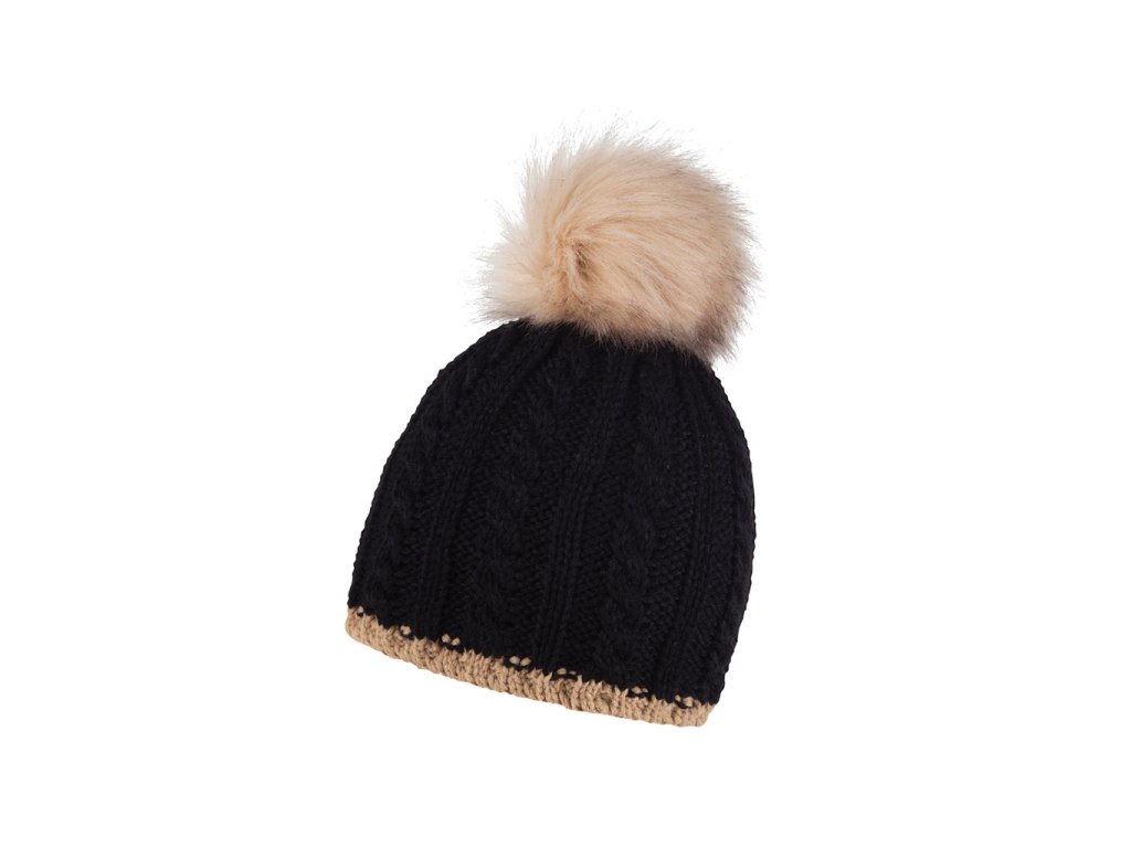 Zimní čepice s kontrastním pruhem, bambulí a fleecovou podšívkou.