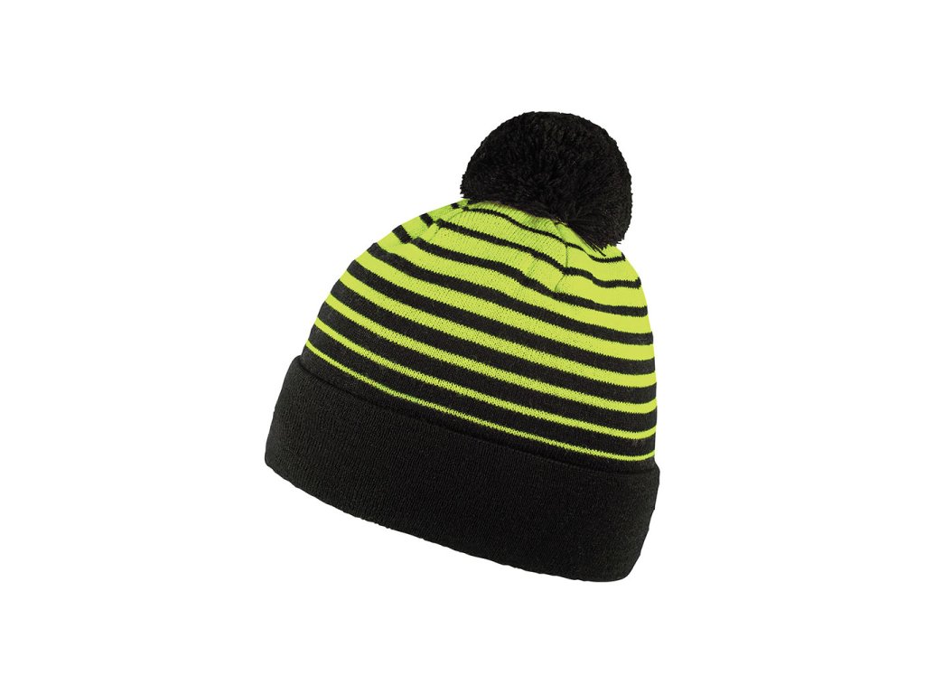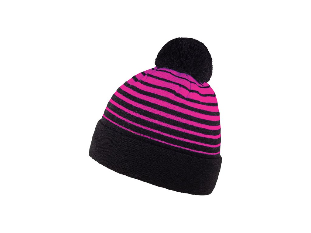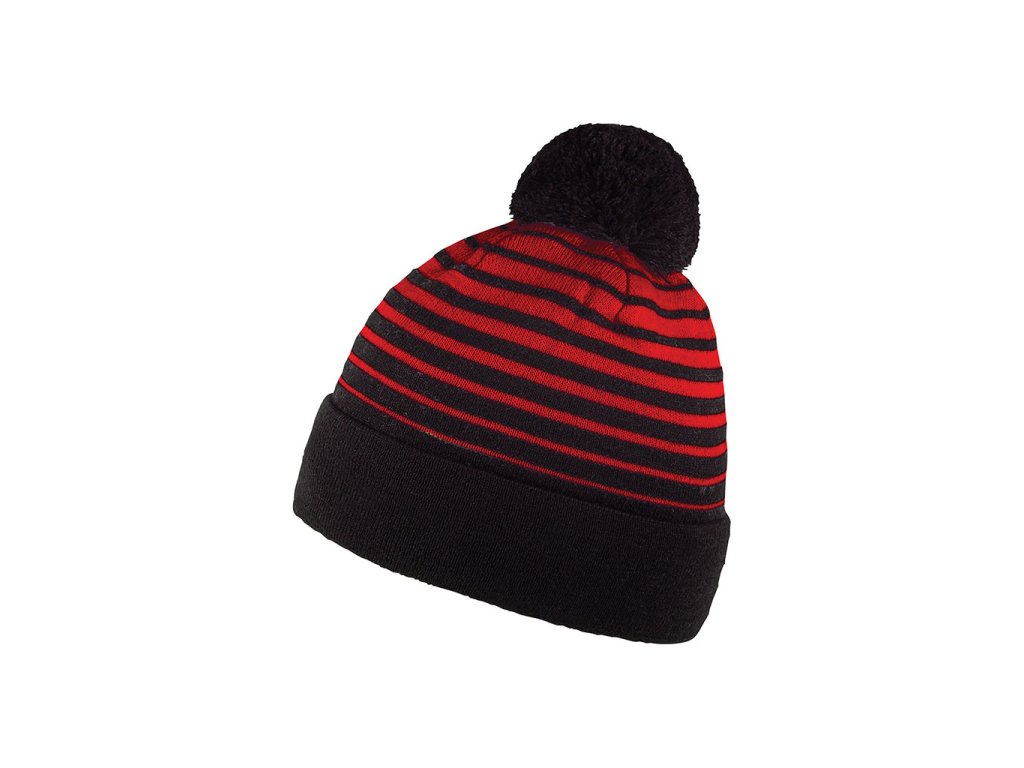 Pruhovaná zimní čepice s dvojitým úpletem a bambulí. Unisex velikost.