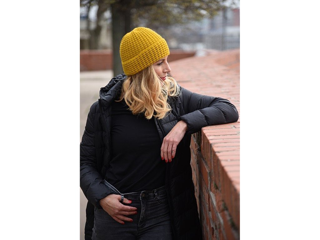 Jednovrstvá úpletová čepice se záhybem bez fleecové podšívky.