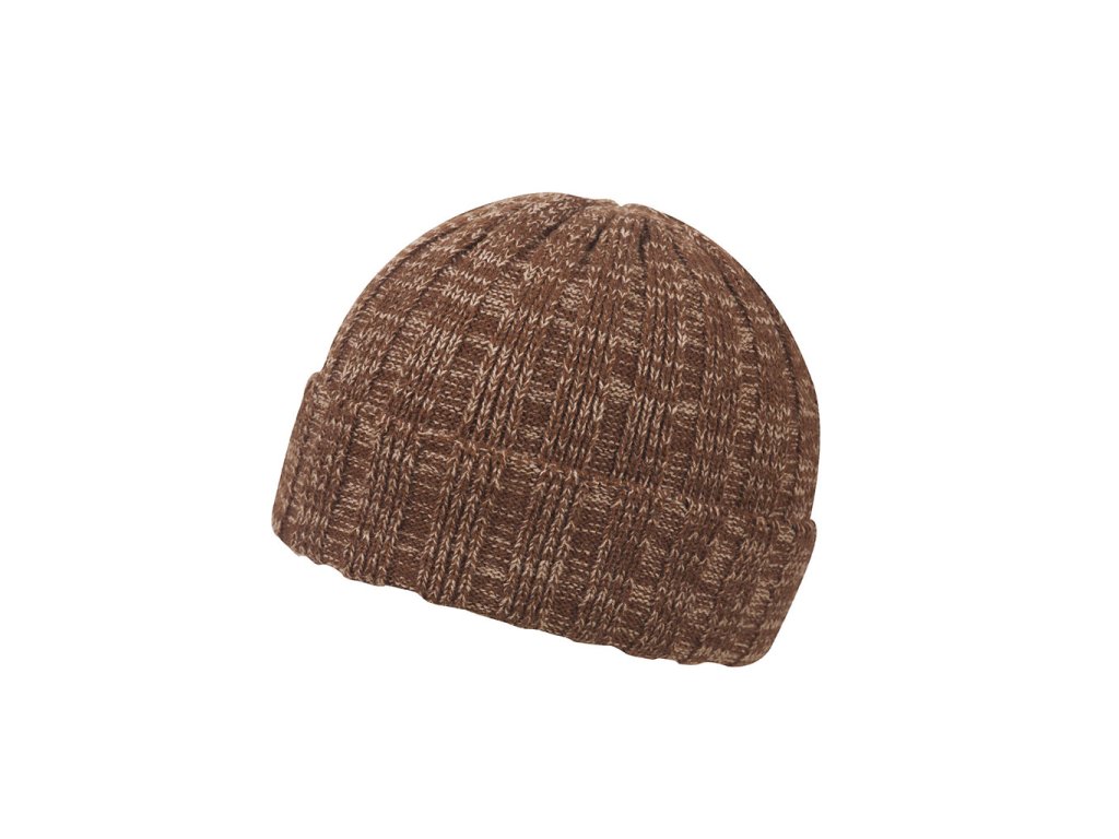 Zimní čepice s jednou vrstvou bez podšívky a ohrnutým lemem.