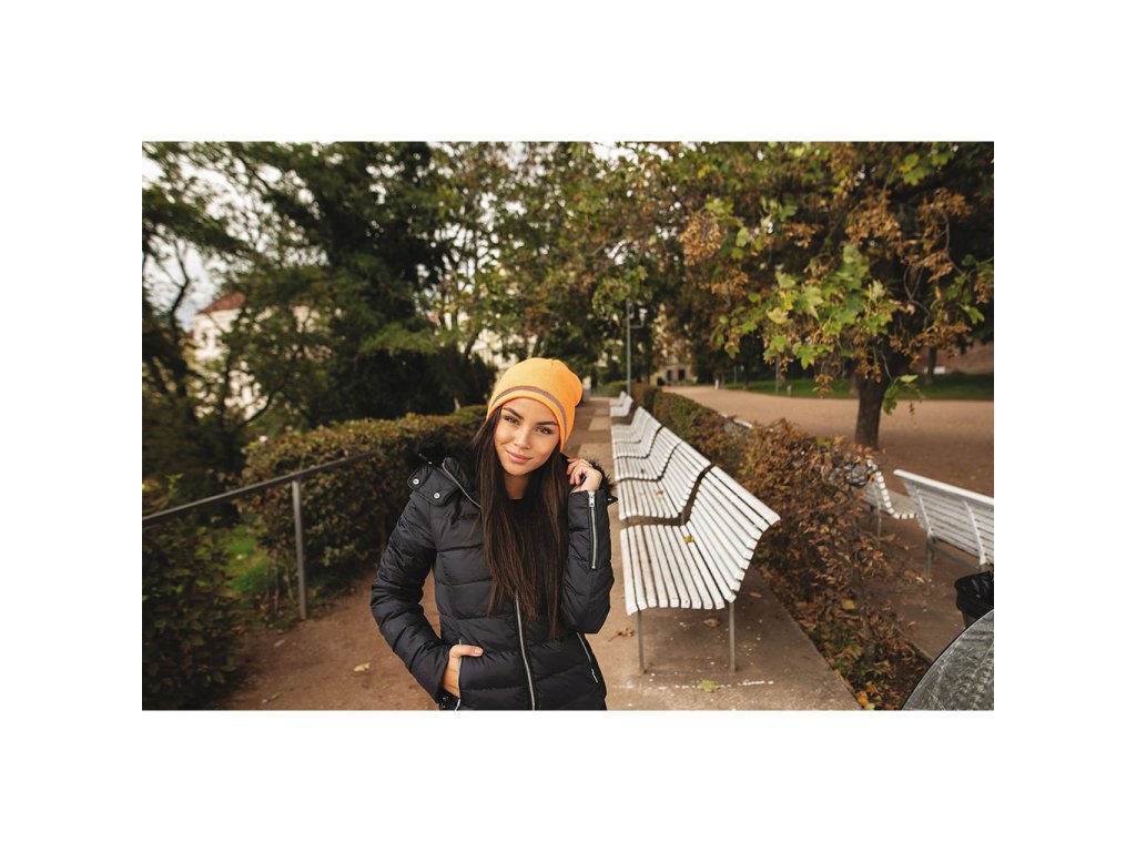 Zimní čepice z dvojitého úpletu, která má bezpečnostní rexflexní proužek.