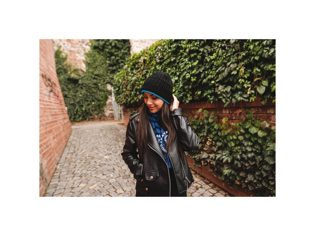Zimní čepice s polar fleece podšívkou a kontrastním pruhem.