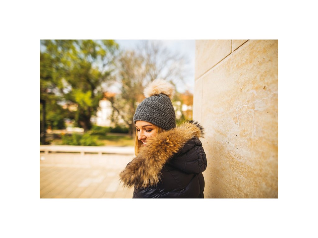 Zimní čepice s polar fleece podšívkou a kontrastní bambulí.